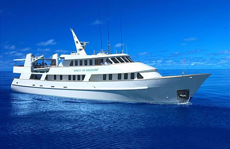 Spirit of Freedom is Australia’s most comfortable live aboard diving vessel offering the best dive cruising to the Great Barrier Reef and remote Coral Sea reefs out of Cairns in tropical north Queensland. During your dive trip you will be treated to first class chef prepared meals and complimentary wine with your evening meal after an amazing day of diving. There are three decks on Spirit of Freedom with a separate lounge, dining and under cover top deck providing plenty of space for up to 26 guests. The 11 generous air-conditioned cabins all containing private bathrooms make for a very comfortable live aboard diving adventure to the Great Barrier Reef.
