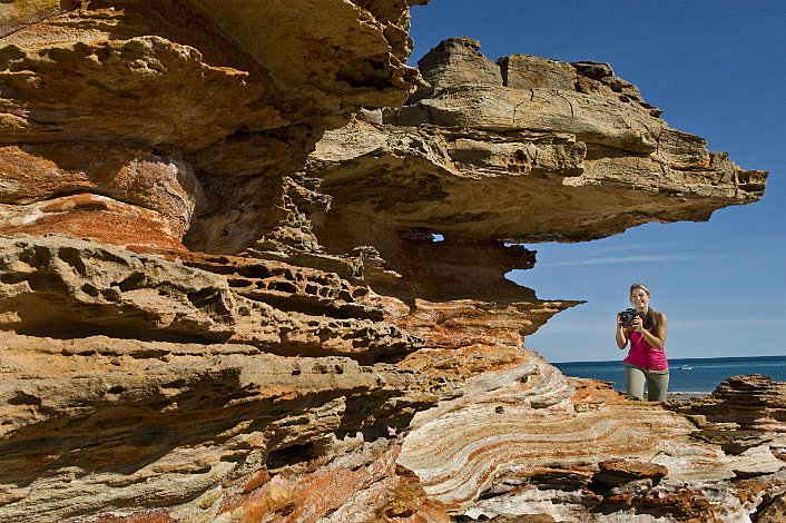 Beginning in Chinatown with fascinating stories of this multi-cultural precinct, we visit a pearl shop and Sun Pictures, the world’s oldest operating picture gardens, before heading through Old Broome past old Pearling Masters’ homes. At Town Beach, learn of Broome’s One Day War then stop at Matso’s Broome Brewery to taste their hand made ales and famous ginger beer or visit one of the local arts & craft galleries nearby. Then visit the Japanese Cemetery and Broome Port before arriving at Gantheaume Point, known for dinosaur footprints and Anastasias Pool. Then it’s down to Cable Beach, to enjoy light refreshments and nibbles as you watch the sunset.