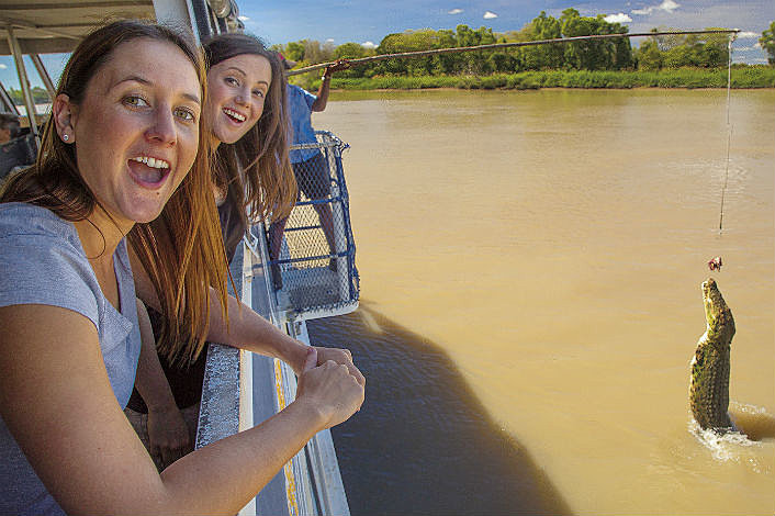 This adventurous tour departs daily at 1:15 pm (earlier from your Darwin accommodation) and takes you on the absolute ride of your life. Just a short 60 kms from Darwin – travelling down the Stuart Highway, listening to an enjoyable expert commentary about the surrounds of Darwin – you’ll head to the majestic Adelaide River. Home to well over 1600 Crocodiles and the prime location of the famous or infamous Jumping Crocodiles, watch these gigantic prehistoric reptiles as they launch themselves from the water for a tasty treat that’s extended on a pole from your boat. You will laugh your head off, scream yourself silly and have the absolute time of your life as these enormous beasts follow you for just one more tidbit.