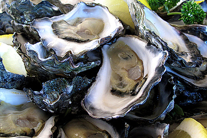 (GF) Chilled Sydney rock oysters served with sea salt and lemon wedges
